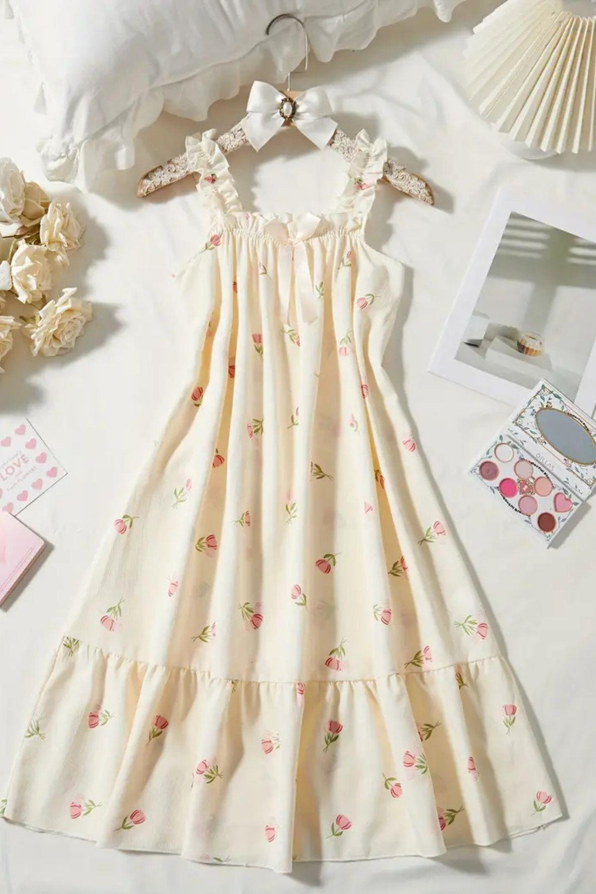 Bella Notte Sarı Lale Desenli Gecelik Elbise 35525