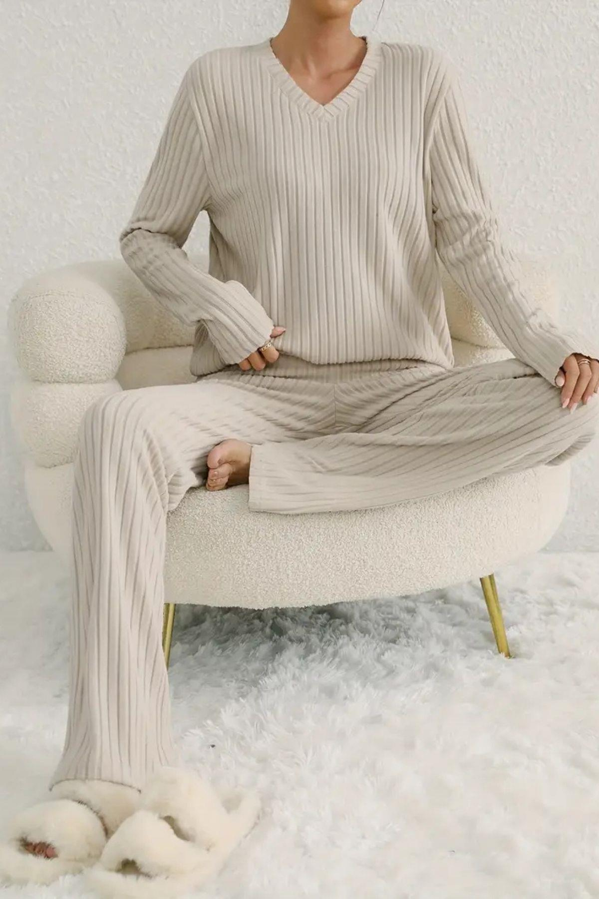 Bella Notte Bej V yaka Uzun Kollu soft Alt Üst Takım 77303