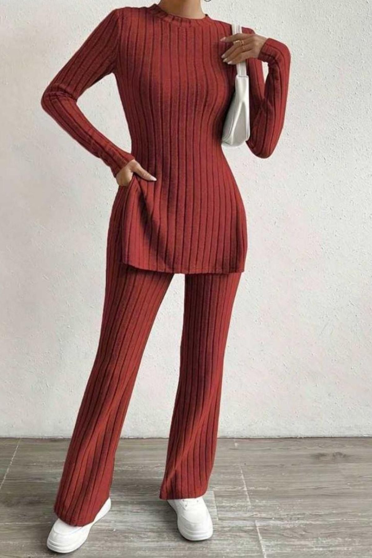 Bella Notte Bordo Fitilli Yırtmaç Detaylı Uzun Pijama Takımı 77307