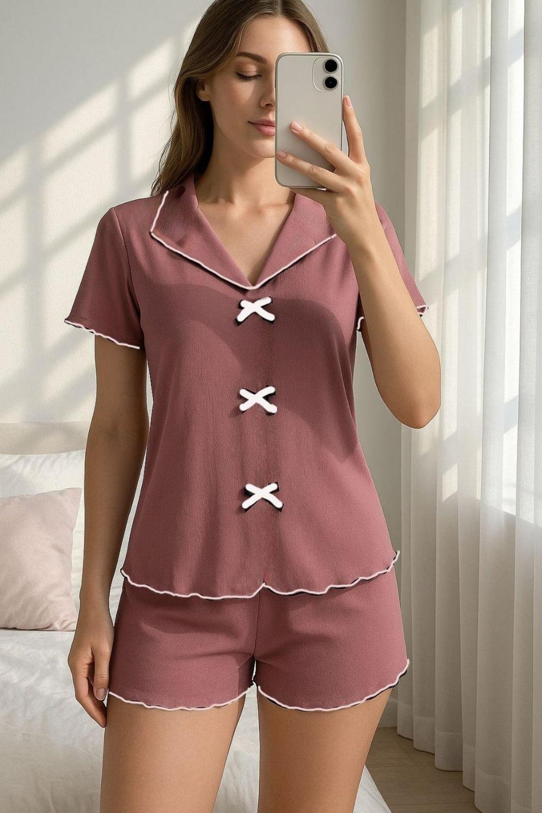 Bella Notte Bordo Pamuklu Şortlu Pijama Takımı 7741 (7741.6.S)