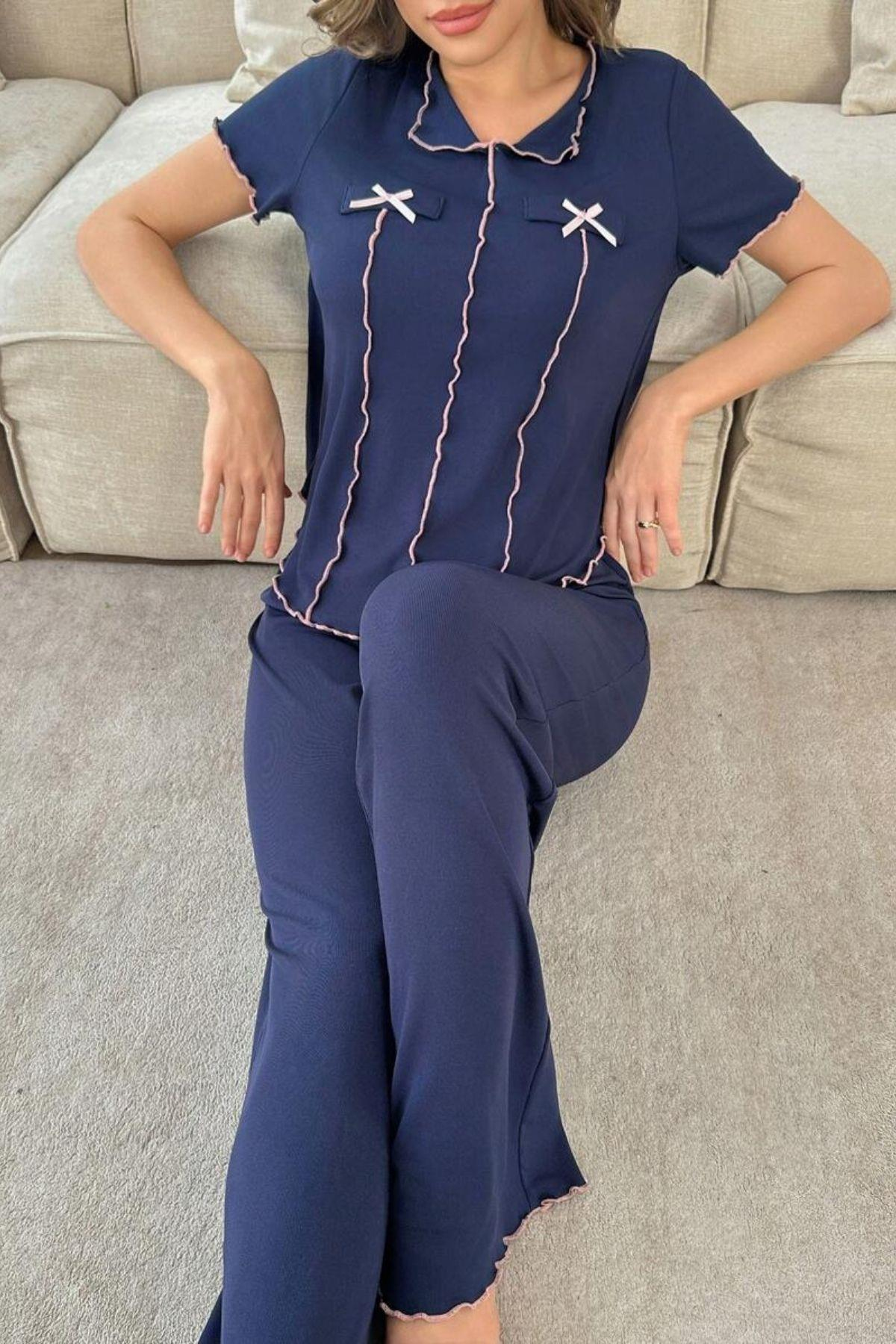Bella Notte Mavi Fiyonk Detaylı Pjama Takım 7367
