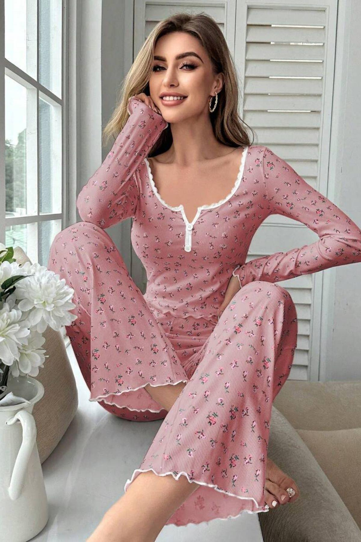 Bella Notte Pembe Pamuklu Çiçekli Pijama Takımı 77179